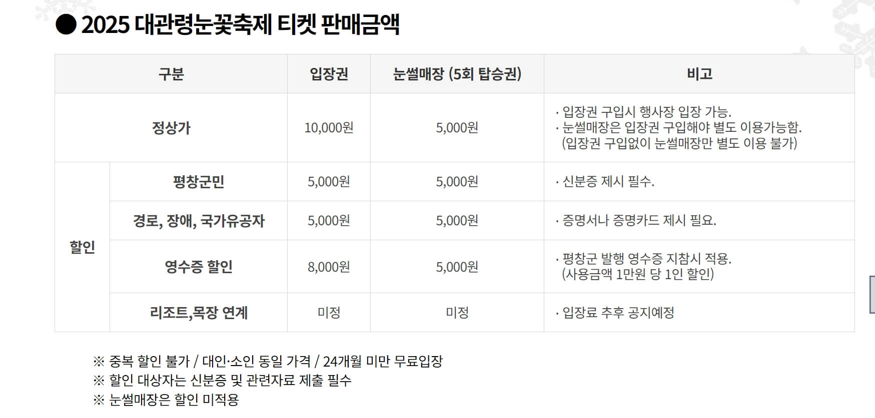 대관령 눈꽃축제 요약 [ 운영시간, 이용요금 및 할인정보]