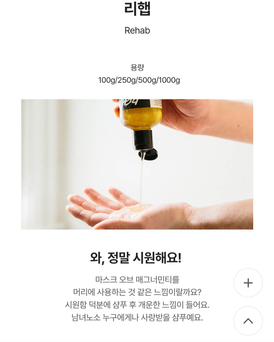 설명: 과일 성분이 함유된 샴푸로, 두피와 모발에 활력을 부여합니다.